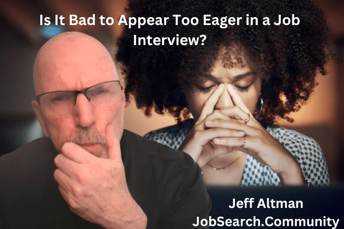 To me, the word eager is the key word here. Eager to me is too much. And you never want to appear like you’re too desirous in an interview.