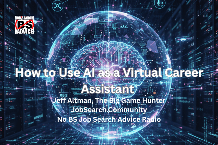 If you want to use AI as a virtual career assistant, follow this prompt. It’s going to give you a lot of great material. I’m Jeff Alen, The Big Game Hunter. People hire me for no BS job search coaching and career advice globally because I make the process of finding work and succeeding at it much easier.