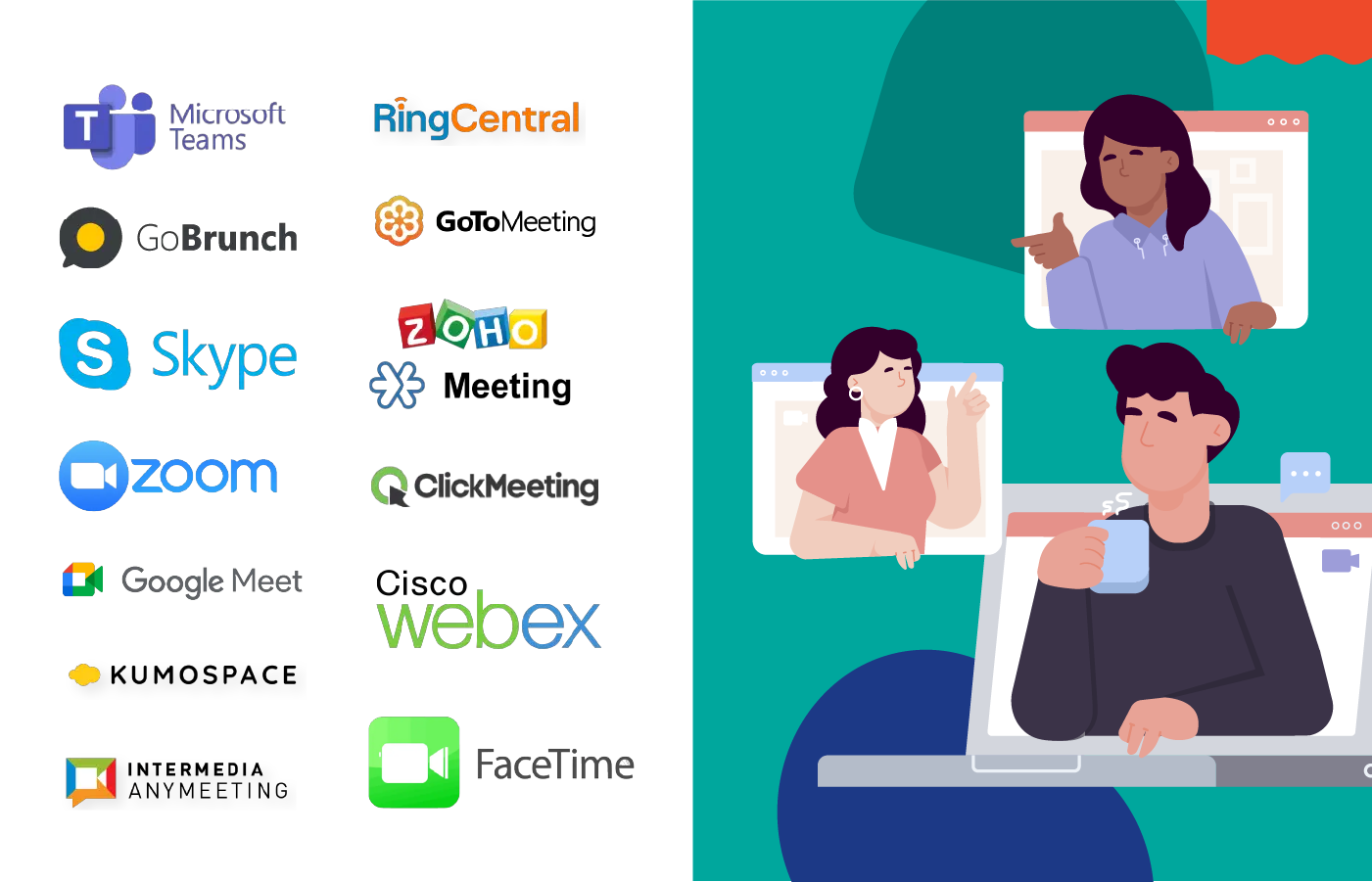 - GoBrunch doesn’t require installation or sign-up to join a meeting.